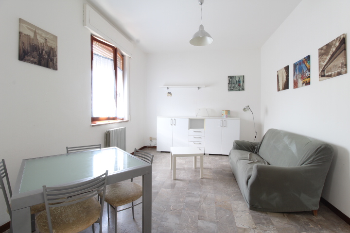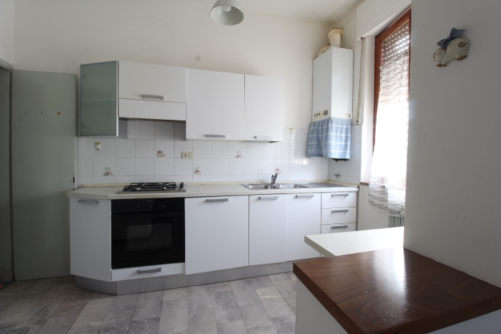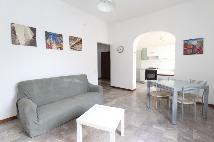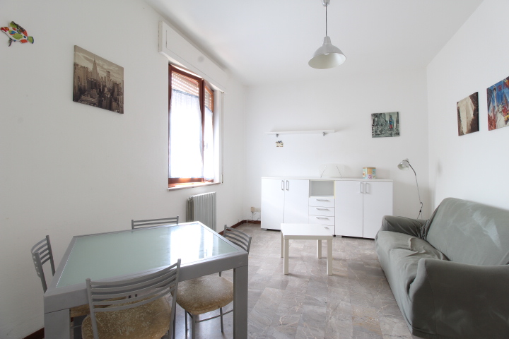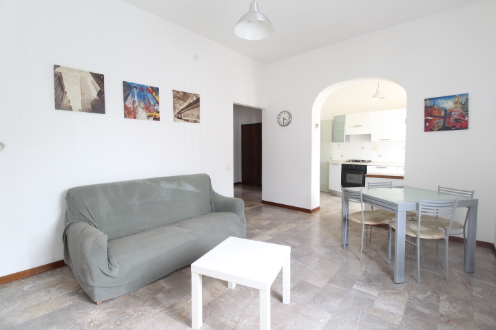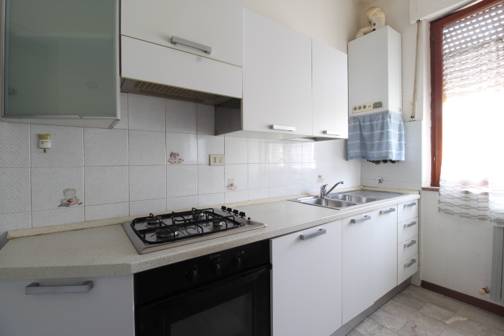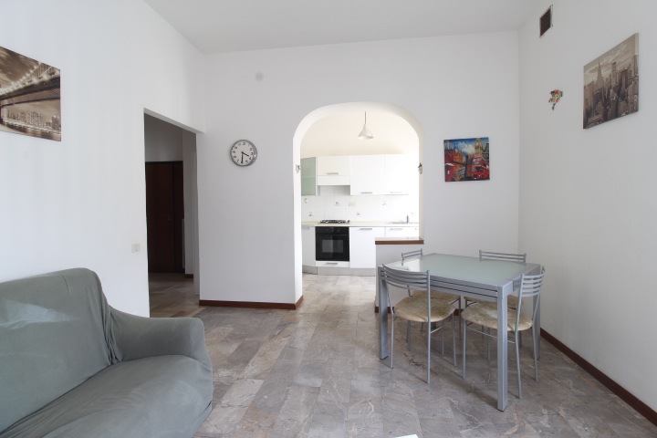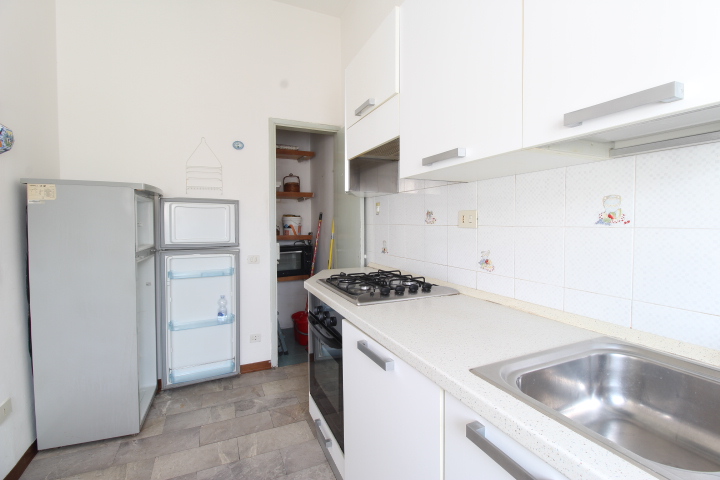 Tramite il disimpegno si accede nella zona giorno, composta da soggiorno con angolo cottura e ripostiglio.