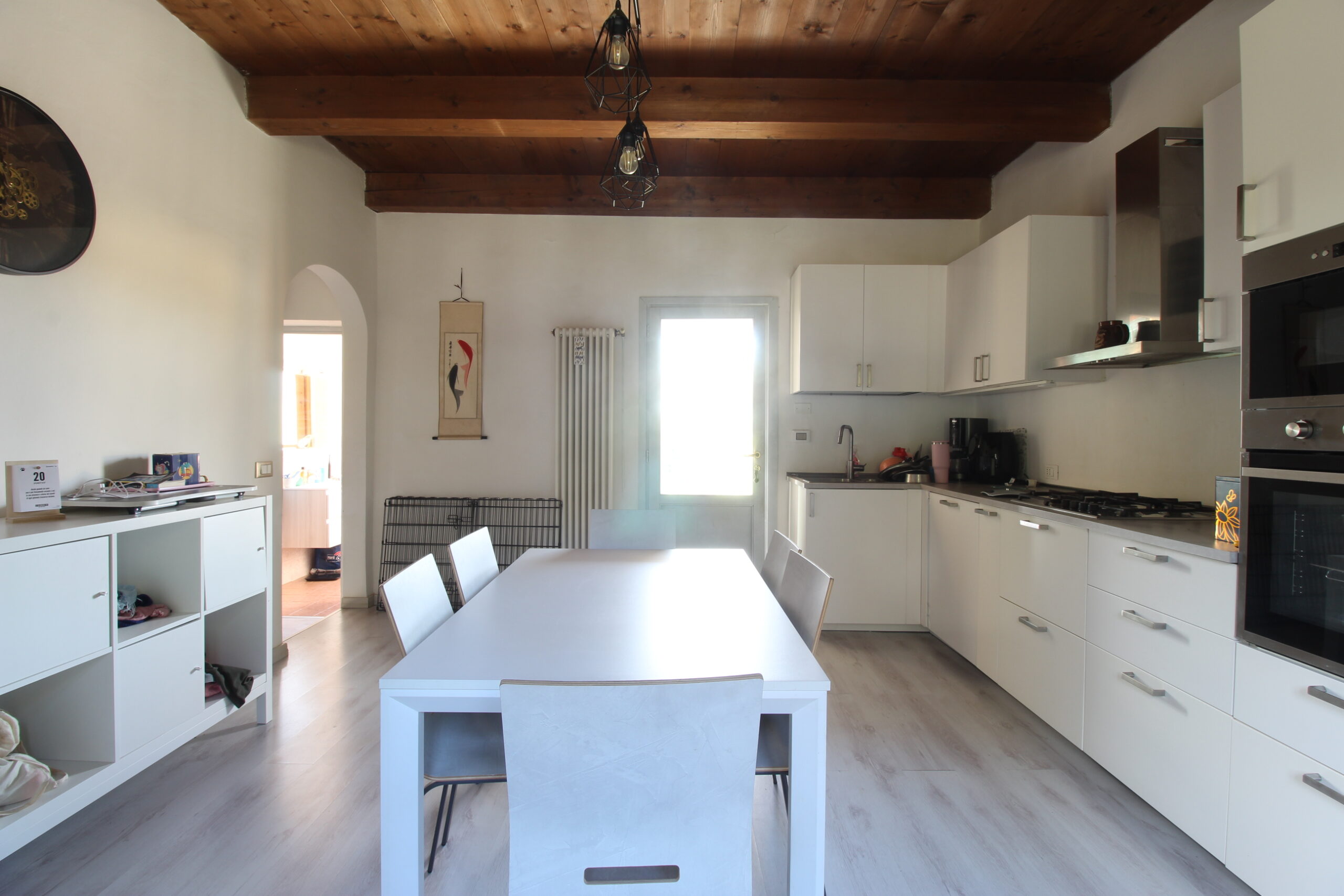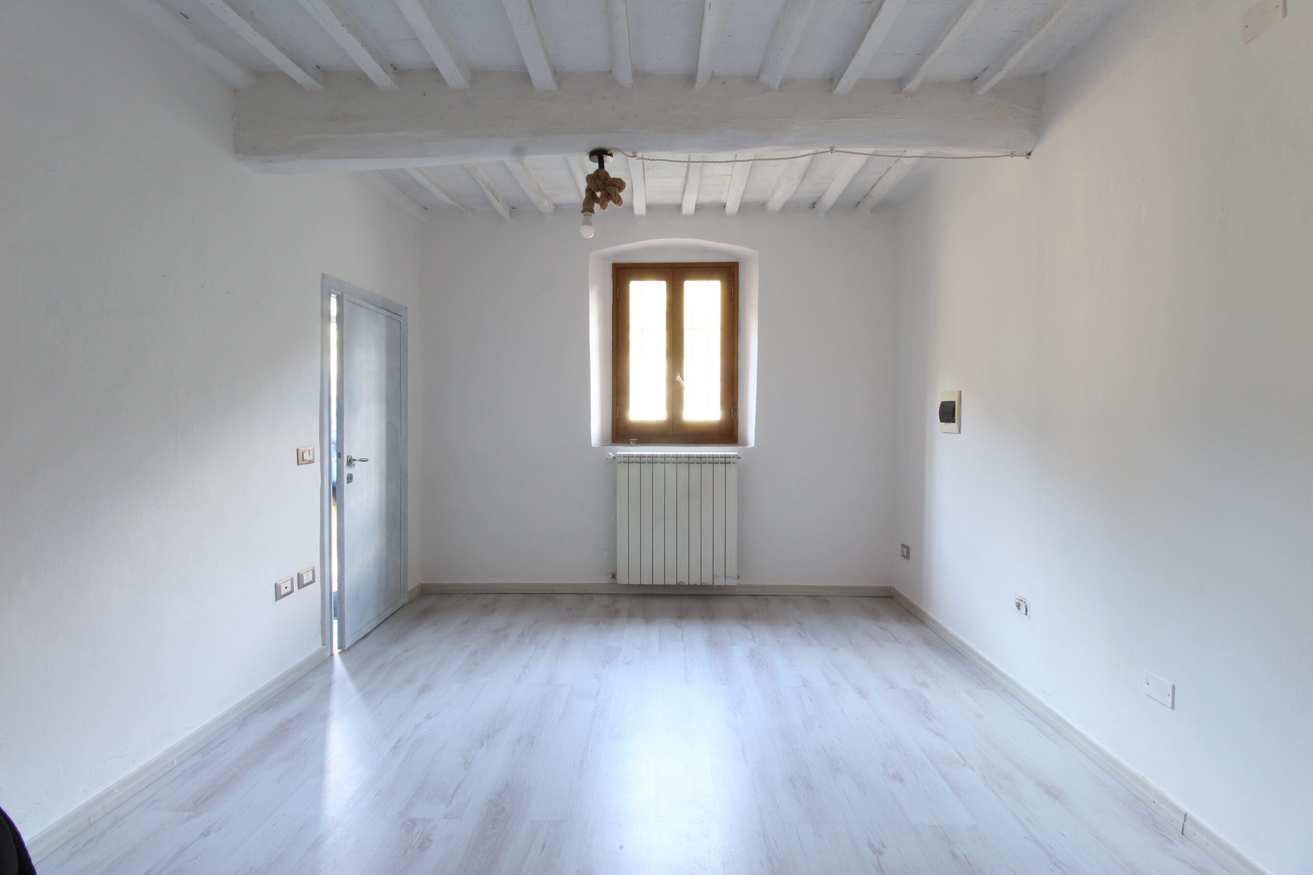 Al primo piano troviamo un’ampia cucina abitabile, con accesso al terrazzo coperto, e una camera attualmente adibita a soggiorno dell’immobile.