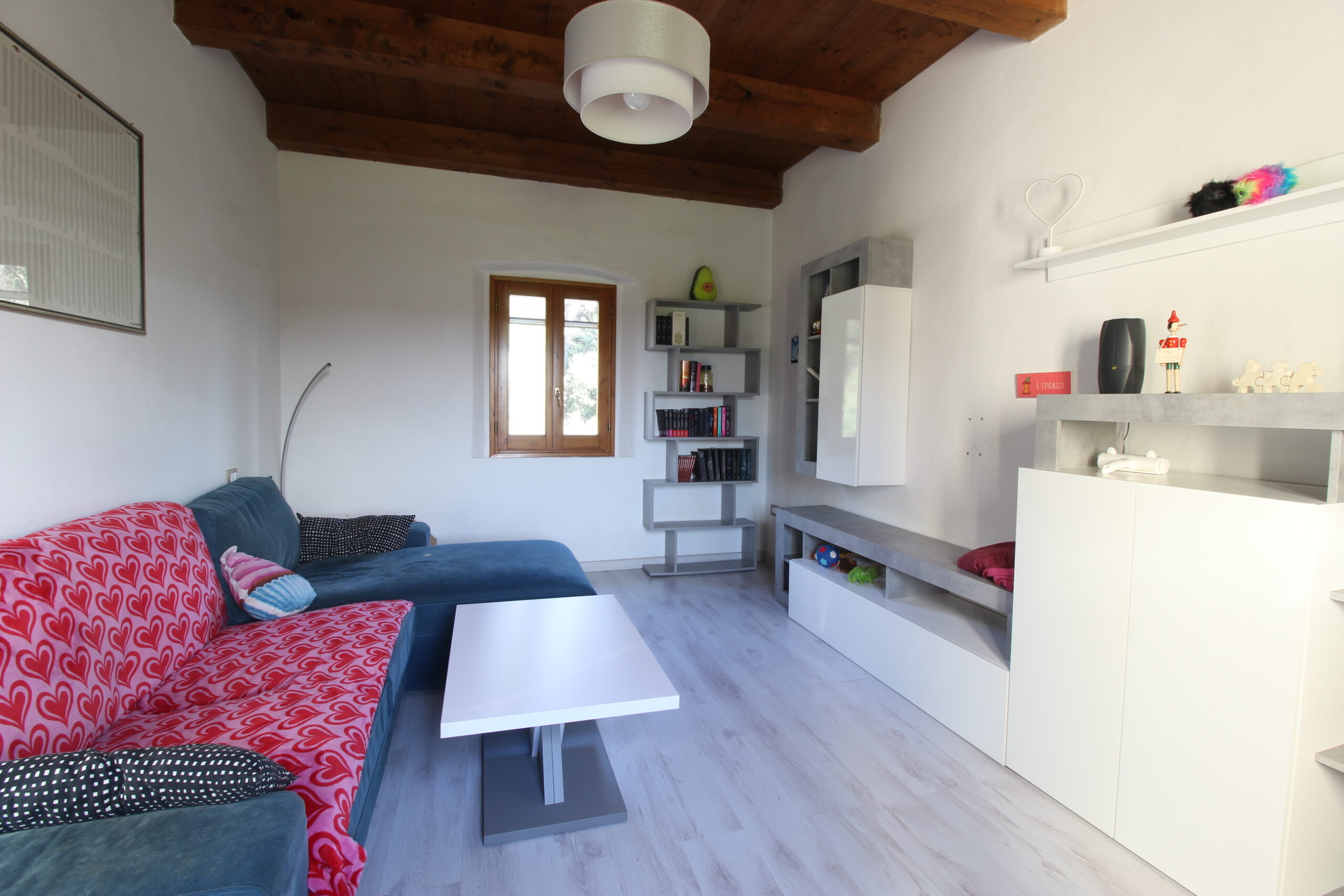 Al piano terra ci accoglie un soggiorno luminoso, ben separato da un locale di sgombero, ad oggi adibito a camera e corredato da locale caldaia.